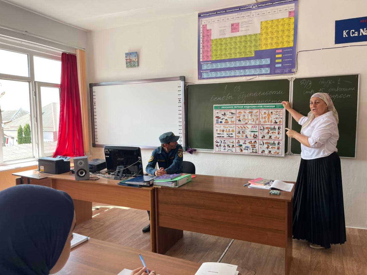 1 сентября 2022 года, в рамках организации Всероссийского открытого урока по Основам безопасности жизнедеятельности учителем ОБЖ Эльгукаевой Алпату Маталовной совместно с пожарным ПЧ-16 по Серноводскому муниципальному району Аниевым Джамалдином Ахметовичем был проведен открытый урок по пропаганде культуры безопасности среди подрастающего поколения: «Правила пользования огнетушителем», «Дорожная безопасность», «Наложение современных пневматических шин», «Надевание противогаза», «Укладывание пострадавшего на носилки».