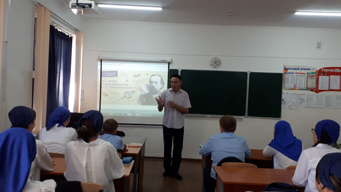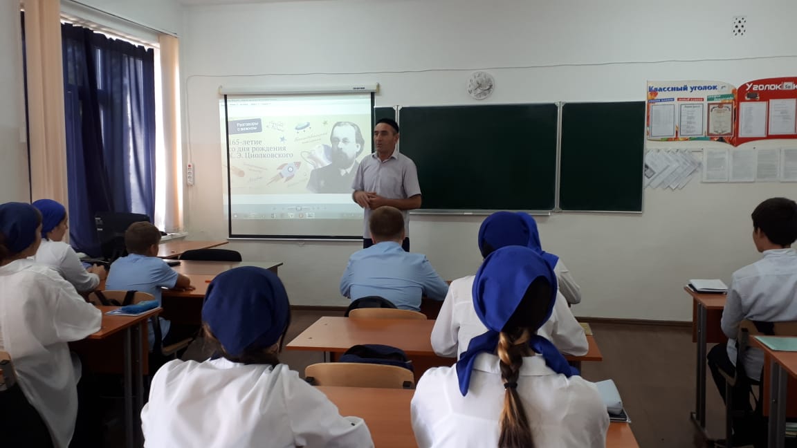 В рамках реализации национального проекта «Образование» и федерального проекта ««Успех каждого ребенка» 19 сентября с учащимися Серноводской школы №3 была организована беседа к 165-летию со дня рождения Константина Эдуардовича Циолковского.