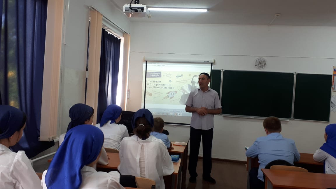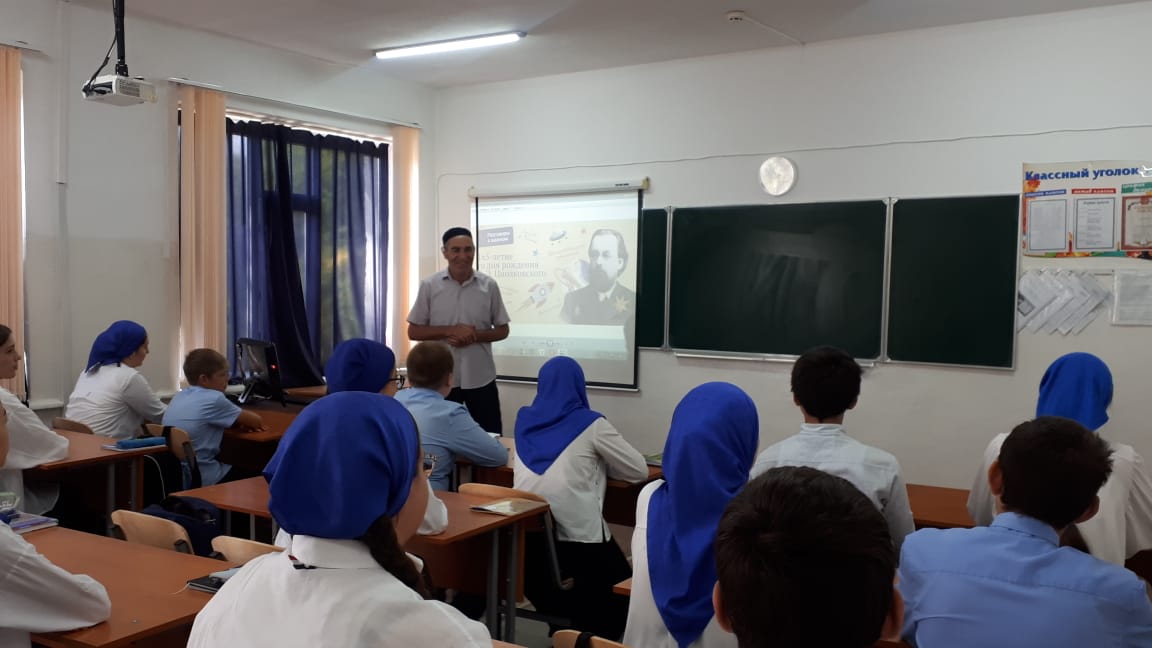 «Самое главное это - понимание учащимися того, что Россия является одной из ведущих космических держав, была ею и остается. Именно Константин Эдуардович Циолковский обосновал возможность покорения космоса, и без его открытий не было бы современной космонавтики – это повод для гордости»- сказал учитель физики Муртазалиев Муртазали Мутиевич