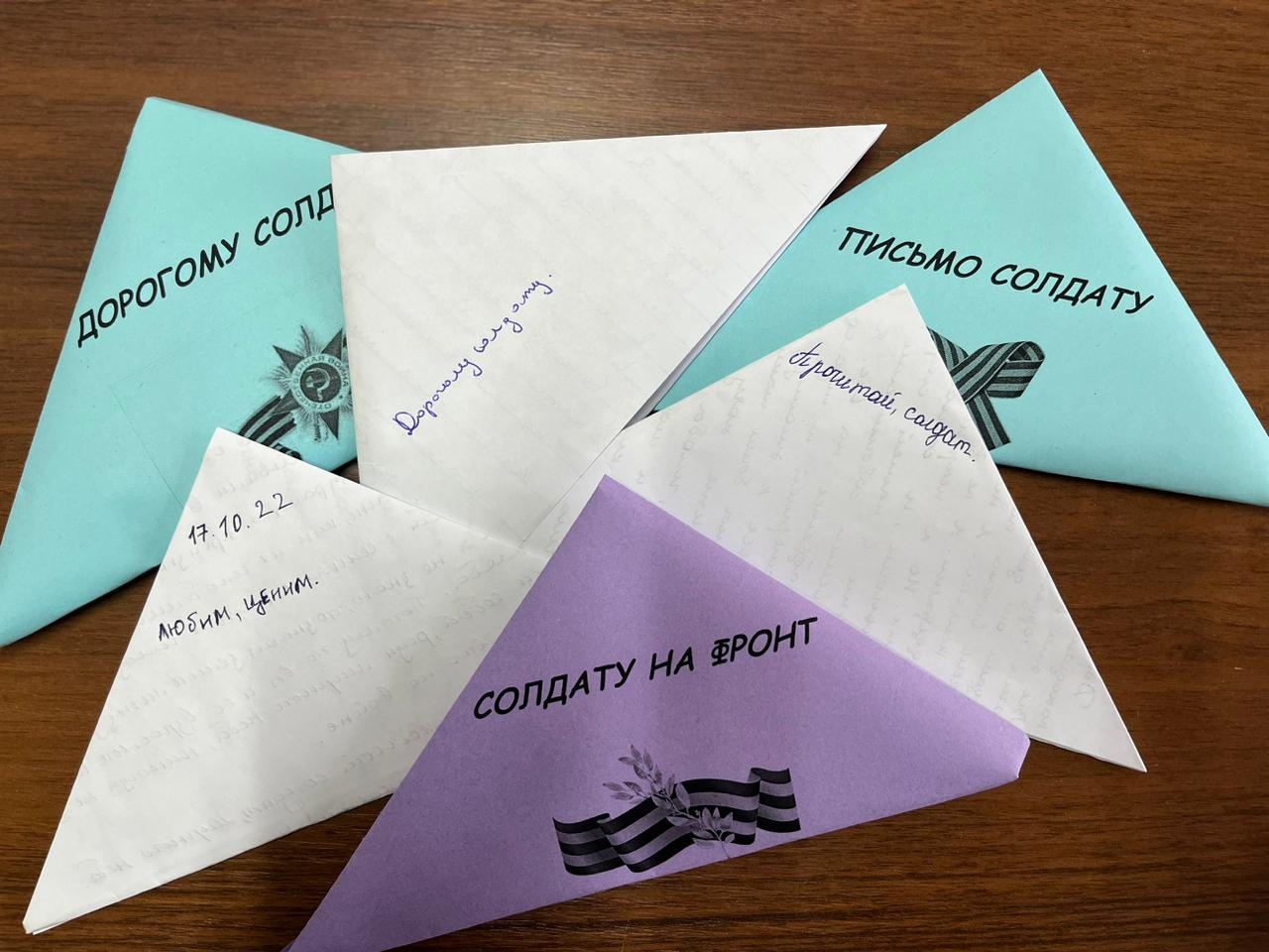 «Наши учащиеся очень уважают участников специальной военной операции, ценят общий вклад в столь важное дело. Крайне важно, что у нас есть связь поколений, тем более, у людей с достаточно коротким разрывом по возрасту. Свои послания ребята сложили в треугольные конверты, как во времена Великой Отечественной войны. Пожелав бойцам побед, сил и стойкости», - прокомментировала учитель истории Хеда Руслановна.