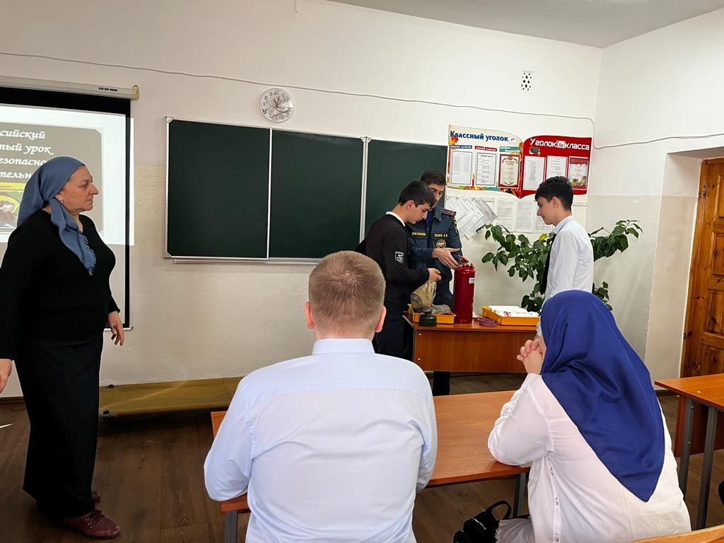 В рамках реализации национального проекта «Образование» и федерального проекта «Социальная активность» 20 февраля 2023 года с учащимися 9 класса Серноводской школы №3 под руководством директора Эльгукаевой Алпату Маталовны совместно с инспектором ОНД и ПР по Серноводскому району Захаевым Али Шамаловичем проведен Всероссийский открытый урок по теме «Основы безопасности жизнедеятельности».