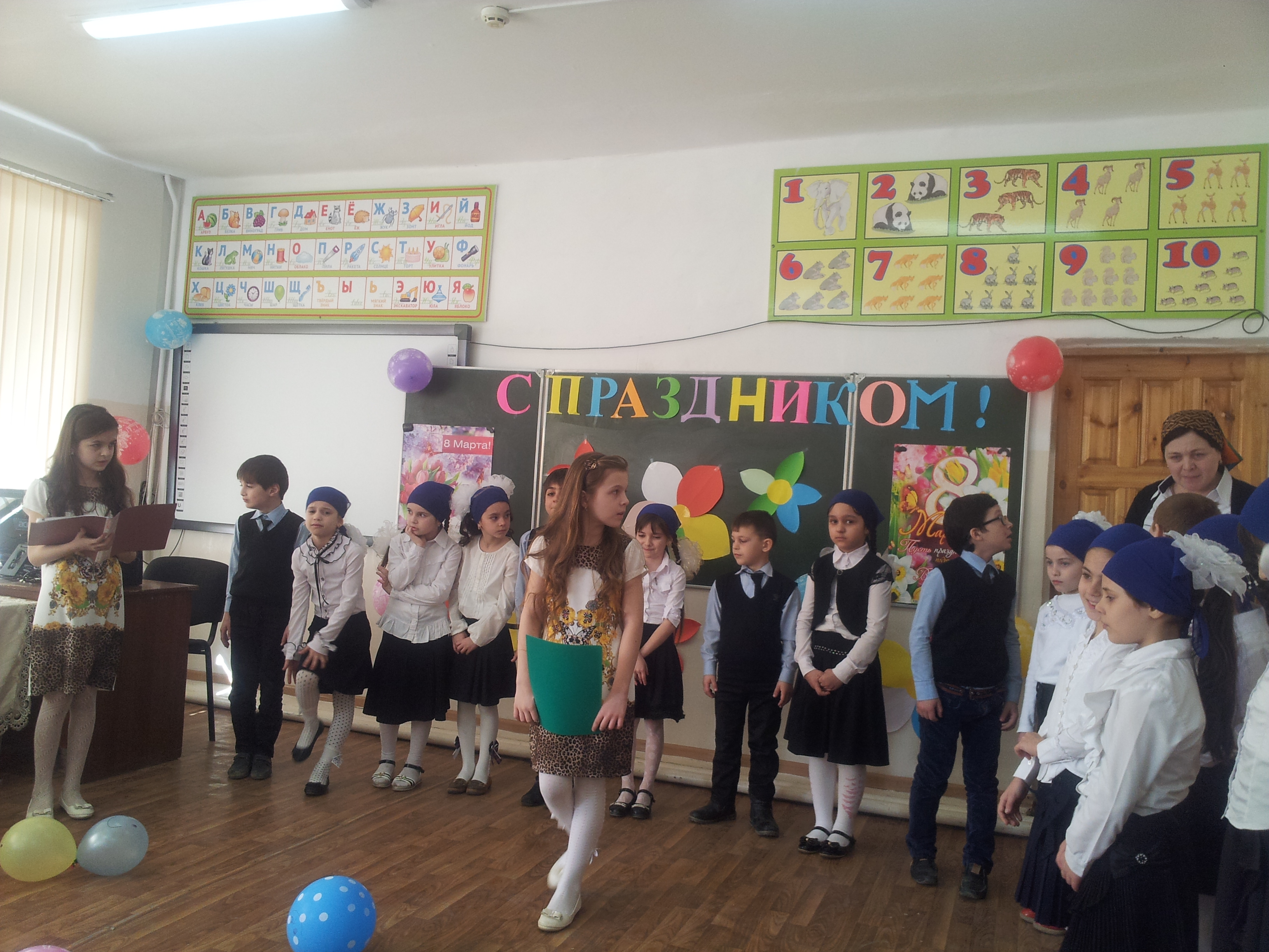 Утренниками и яркими мероприятиями как и везде ознаменовалось преддверие праздника 8 Марта в нашей школе. Это были утренники во 2 «А» классе (Арапханова Е. Р.); 2 «В» классе (Мустапаева Н. Ш.); 4 «А» классе (Арапханова П. Я.); мероприятие 5 «А» класса (Гаербекова Т. С.); «А, ну-ка, девочки!» в 10 «А» классе (Исаева Ф. С.); праздничный концерт, устроенный мальчиками в 8 «Б» (Джакаева М. У.) и т. д. Поздравили с праздником прекрасную половину учащихся, учителей и родителей!
