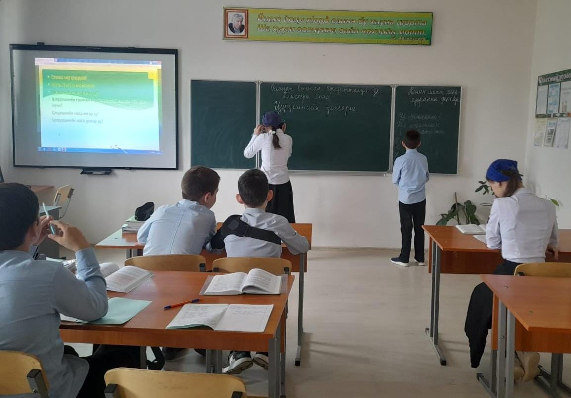 "Ц1ердешнийн дожарш", - так звучала тема открытого урока в 5а классе, прошедшего в МБОУ "СОШ №3 с. Серноводское" Серноводского муниципального района 18 апреля 2024г. в рамках декады чеченского языка.