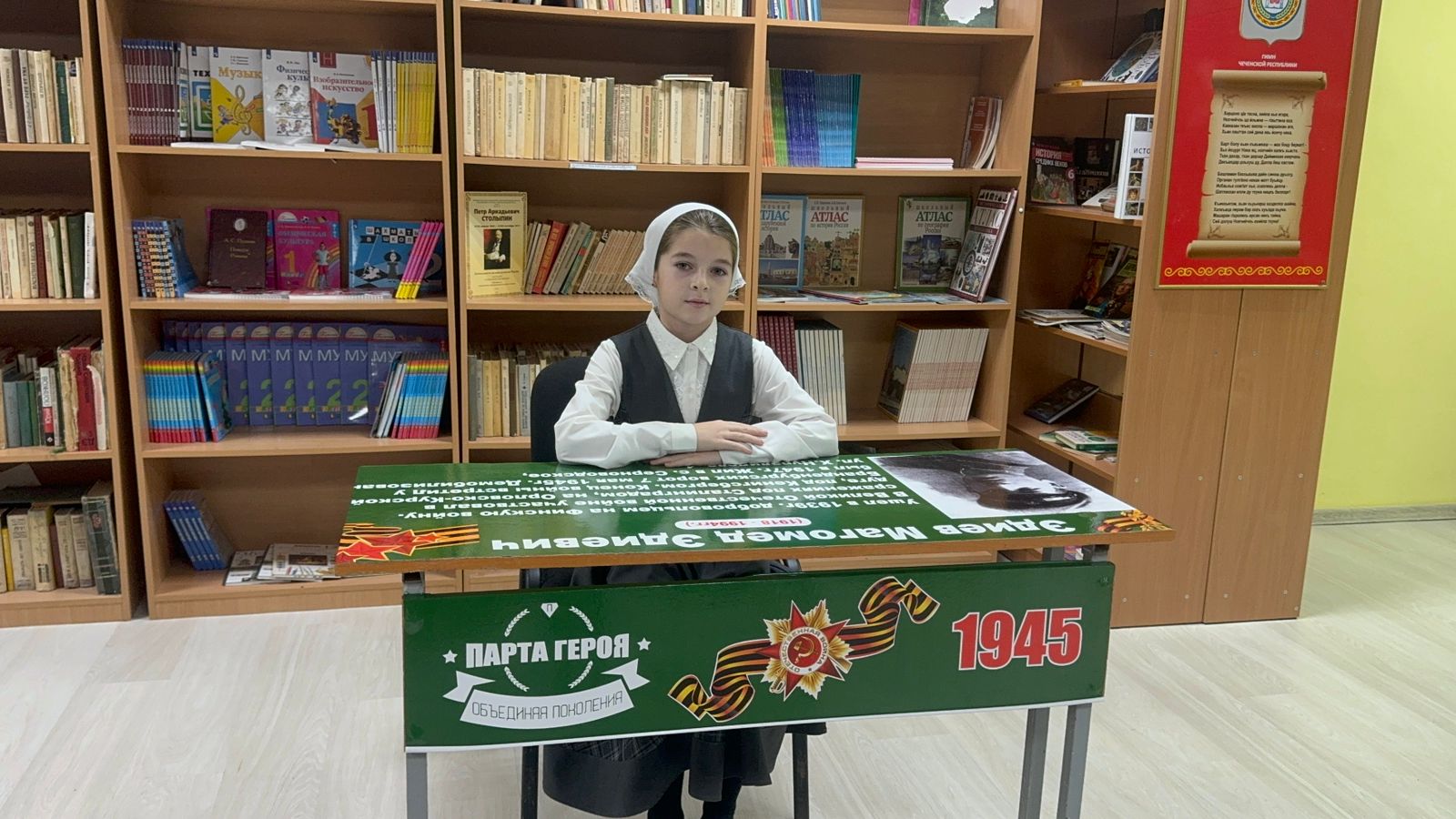««Парта Героя» – важный для воспитания учащихся и объединяющий поколения образовательный проект, право сидеть за такой партой предоставляется ученикам за отличия в учебе, активное участие в жизни школы и класса, победы в значимых конкурсных мероприятиях. Сегодня это право досталось правнучке Героя Эдиевой Петимат учащейся 5 «В» класса», - поделилась Макка Эдельгереевна заместитель директора по воспитательной работе.