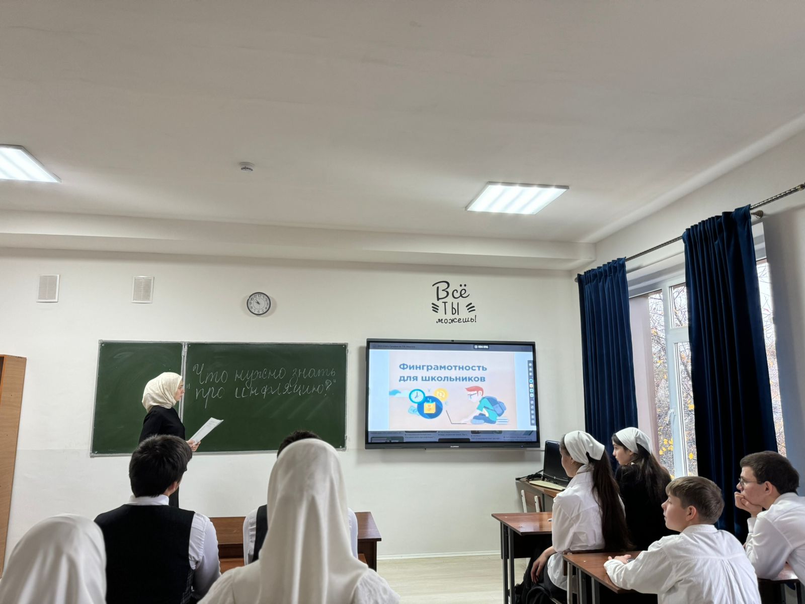 26.11.2024 года в рамках III этапа Всероссийской просветительской эстафеты «Мои финансы» учителем истории и обществознания Чигаевой Х.Р. проведена лекция для учащихся 8- 11 классов по теме: «Что нужно знать про инфляцию?». Цель мероприятия - вдохновить участников принимать активное участие в управлении своими финансами.