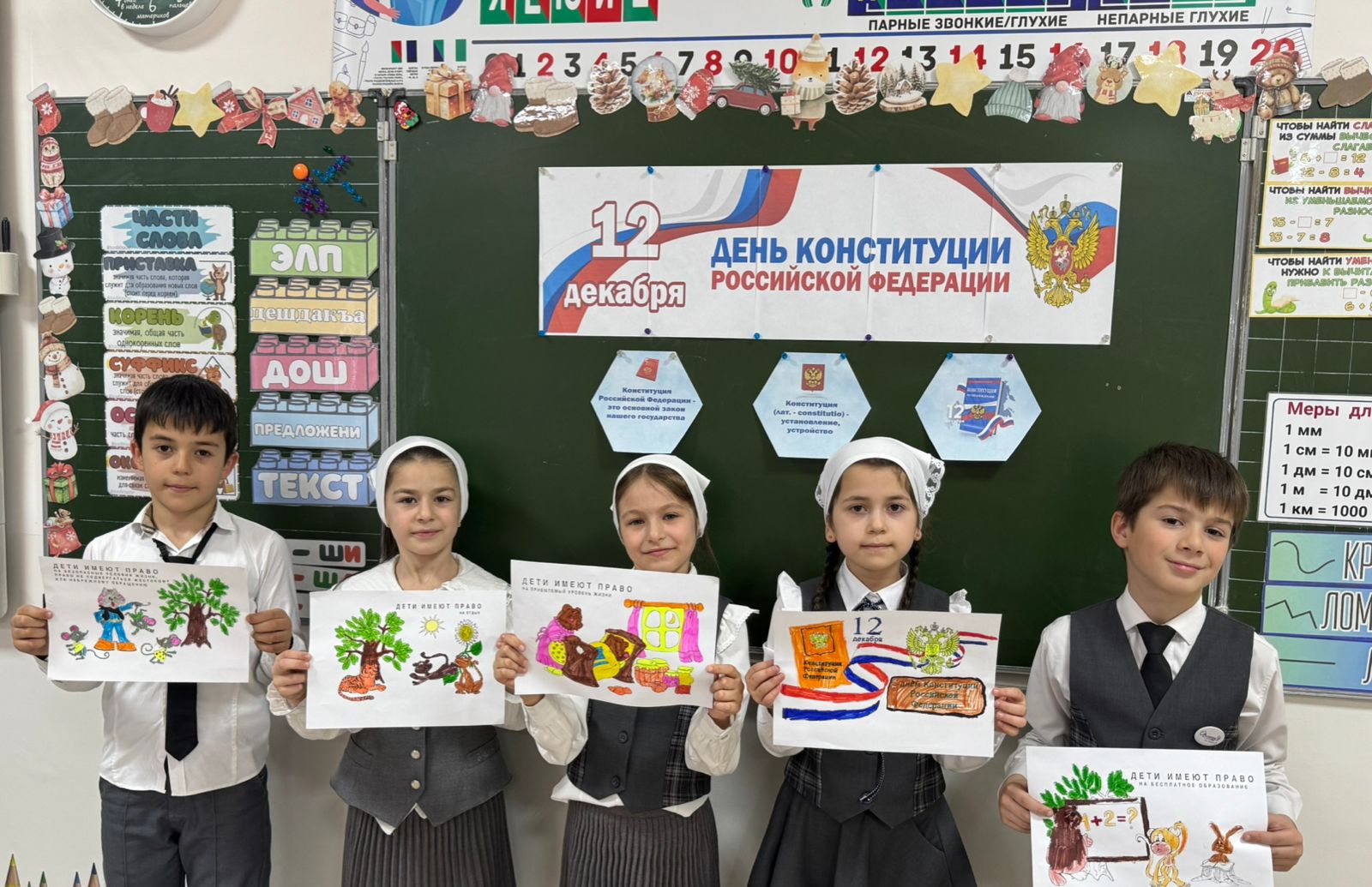 12.12. 2024 года учителями начальных классов Исмаиловой М.Р. и Акуевой Р.М. проведен конкурс рисунка, приуроченный ко Дню Конституции Российской Федерации " Я рисую свои права"