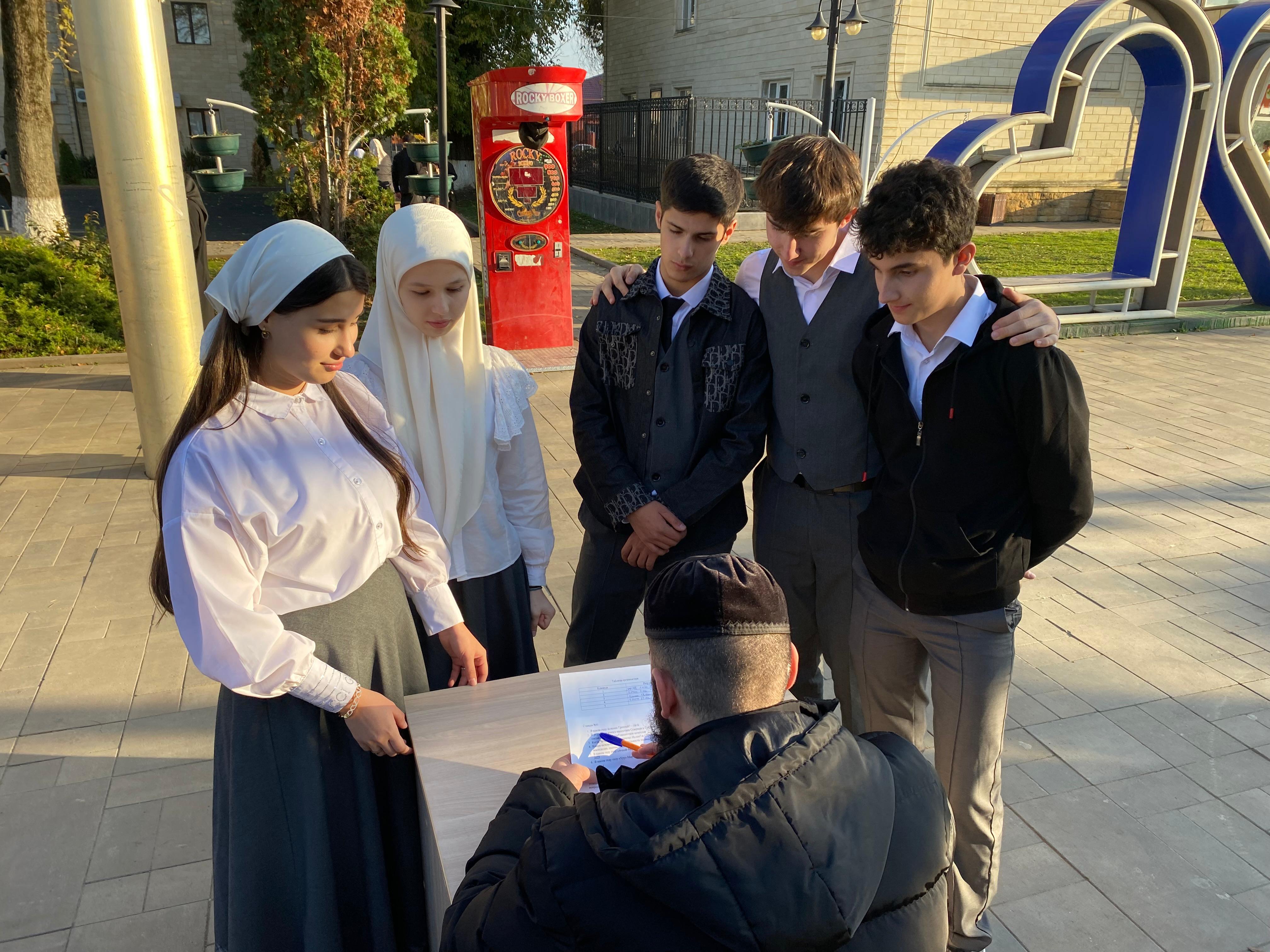 Команду представляли обучающиеся 11 класса: Шатаев Булат, Ибрагимов Хамзат, Шабазов Рахим, Заматханова Петимат, Лечиева Элиза. Ребята продемонстрировали знания в истории, литературе, географии Чеченской Республики.