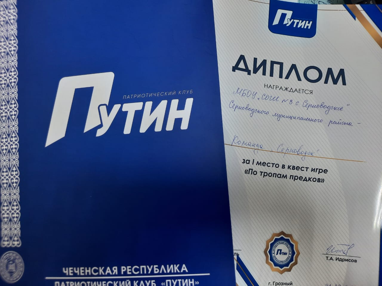 1 место в межрайонной квест-игре "По тропам предков", прошедшей 31.10.2024г. в г. Ачхой-Мартан, завоевала команда МБОУ "СОШ №3 с. Серноводское" Серноводского муниципального района.