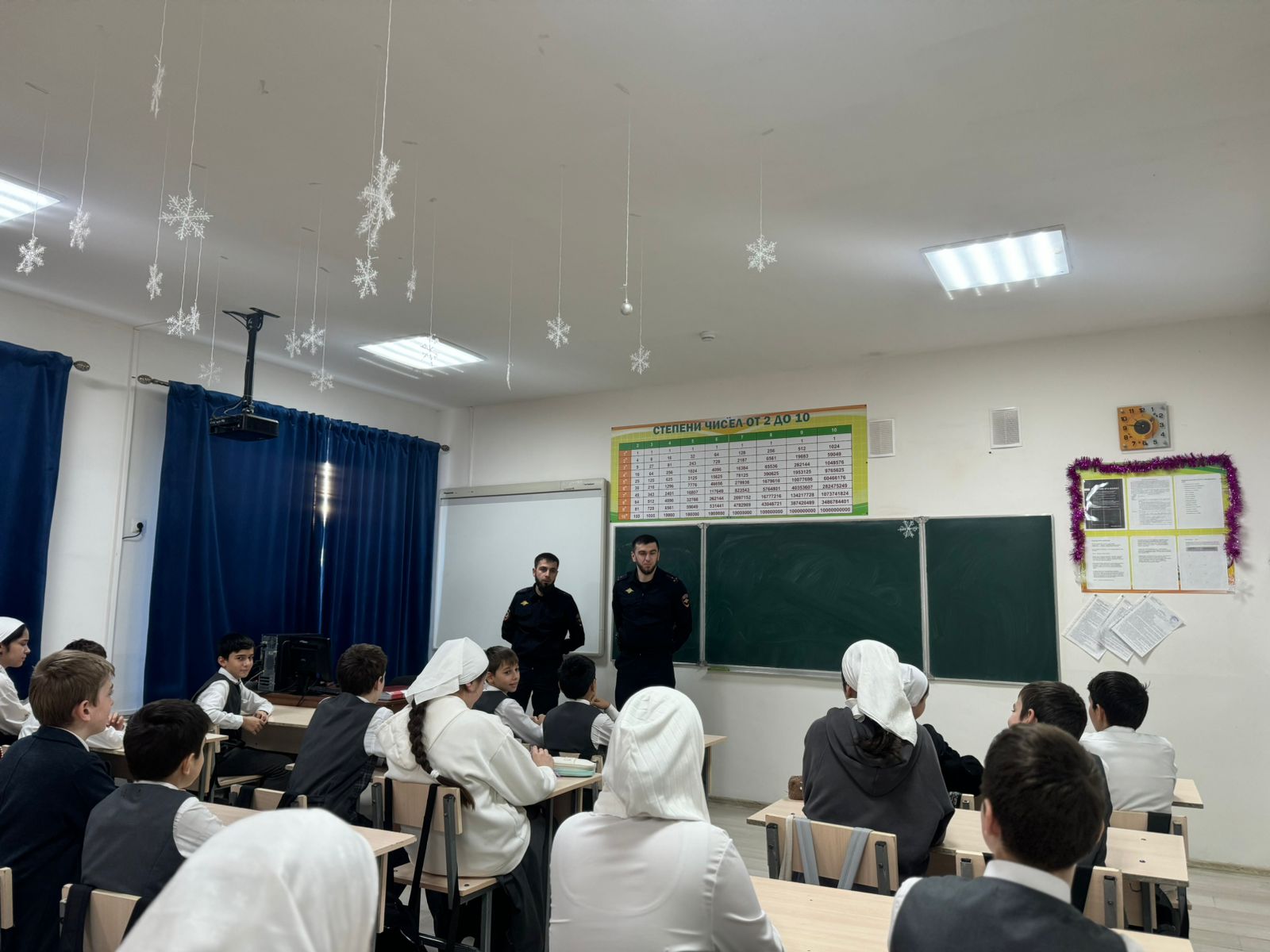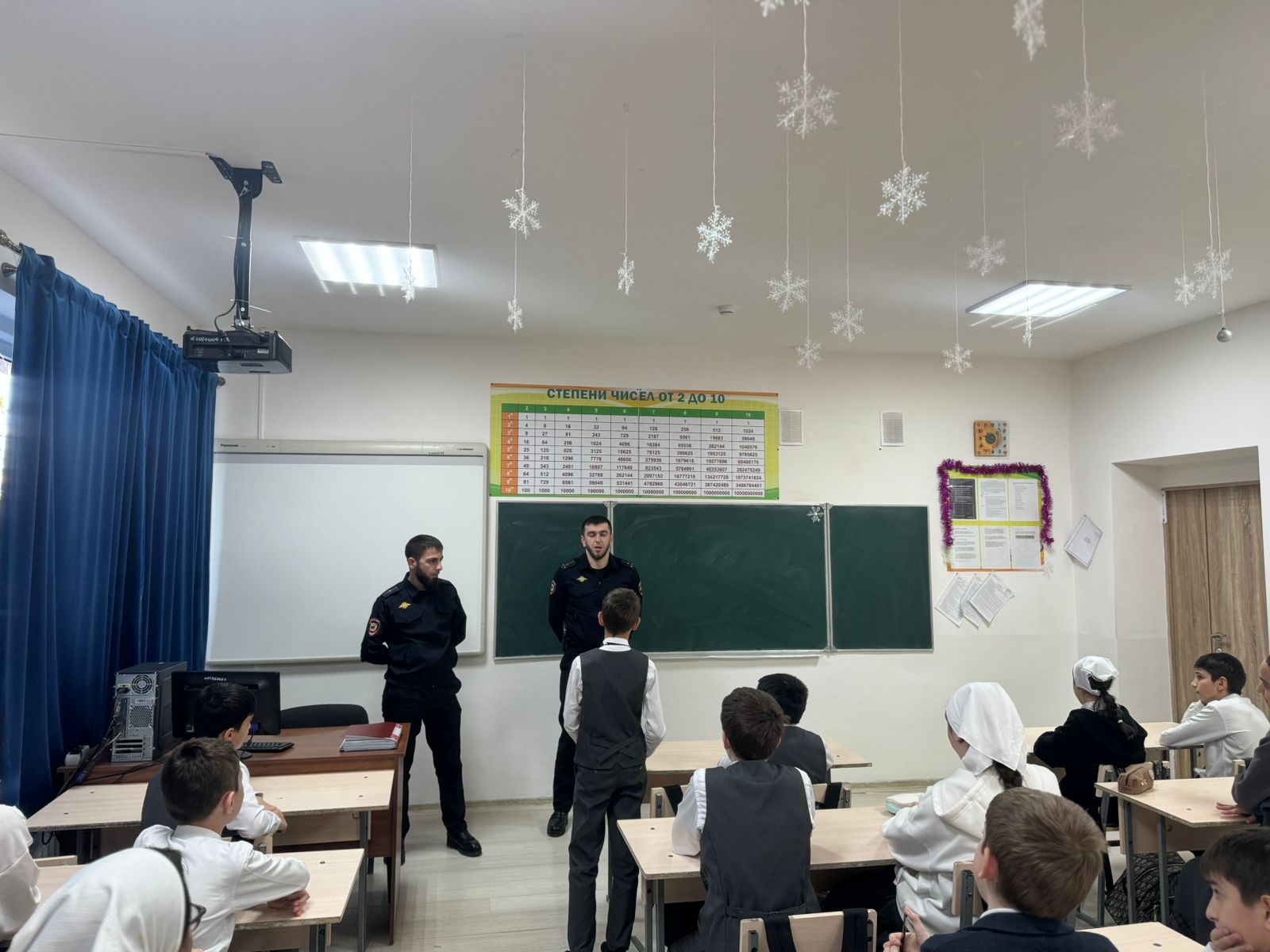 В рамках реализации федерального проекта «Современная школа», национального проекта «Образование», инициированного Президентом России В. В. Путиным, 19 декабря 2024 года учащиеся МБОУ «СОШ №3 с. Серноводское» Серноводского муниципального района встретились с участником СВО младшим лейтенантом полиции Тунгаевым Шамсудинном Бадрудиновичем.