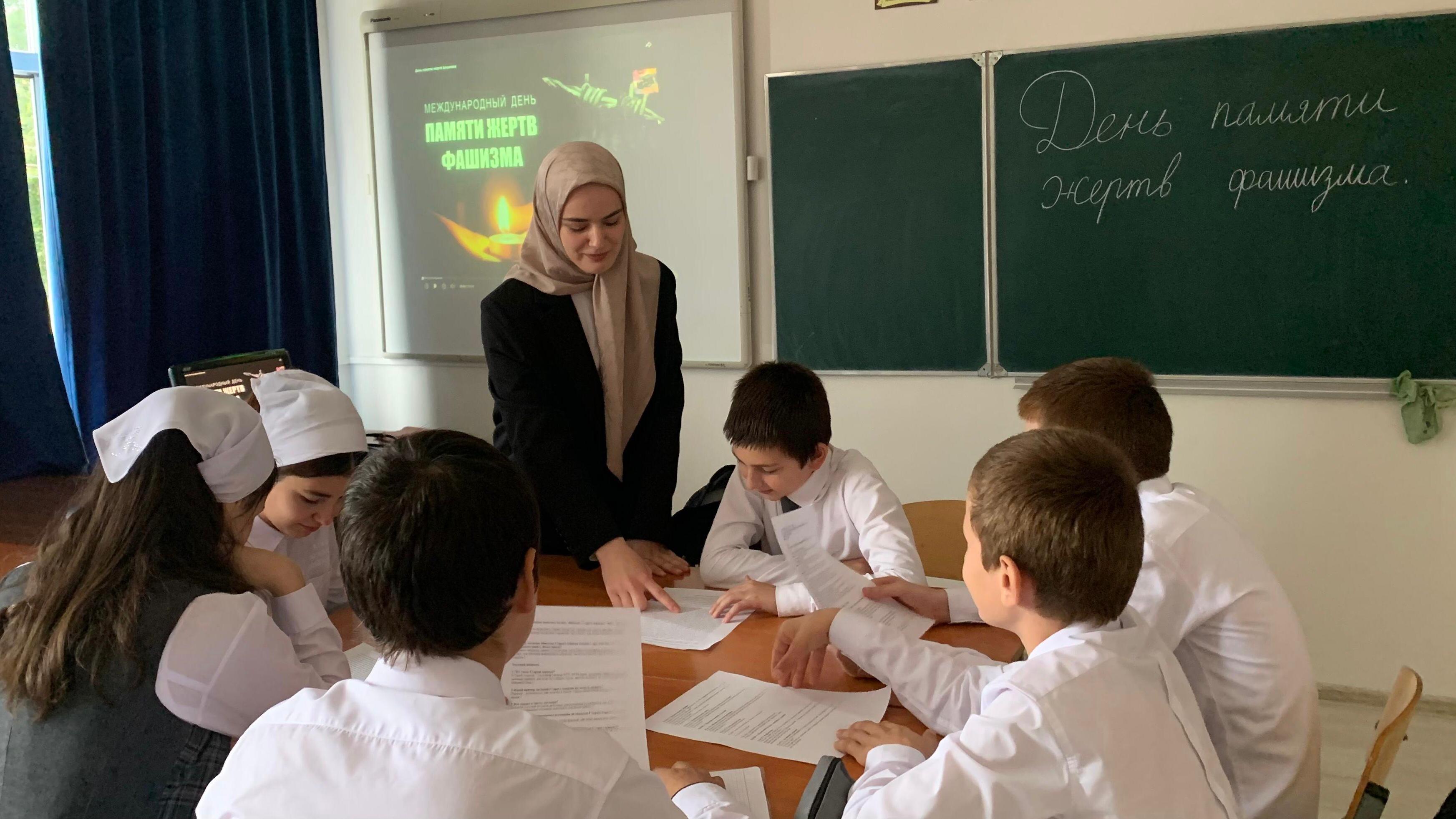 10.09.202510.09.2025г. учителем истории Магомадовой Х.М. проведен круглый стол к Международному дню памяти жертв фашизма с просмотром документального фильма. Цель мероприятия - сохранение исторической памяти о жертвах войны, противодействие возрождению фашистской идеологии, формирование у подрастающего поколения активной жизненной позиции и негативного отношения к фашизму, а также воспитание уважения к подвигу советского народа в Великой Отечественной войне и памяти погибших.