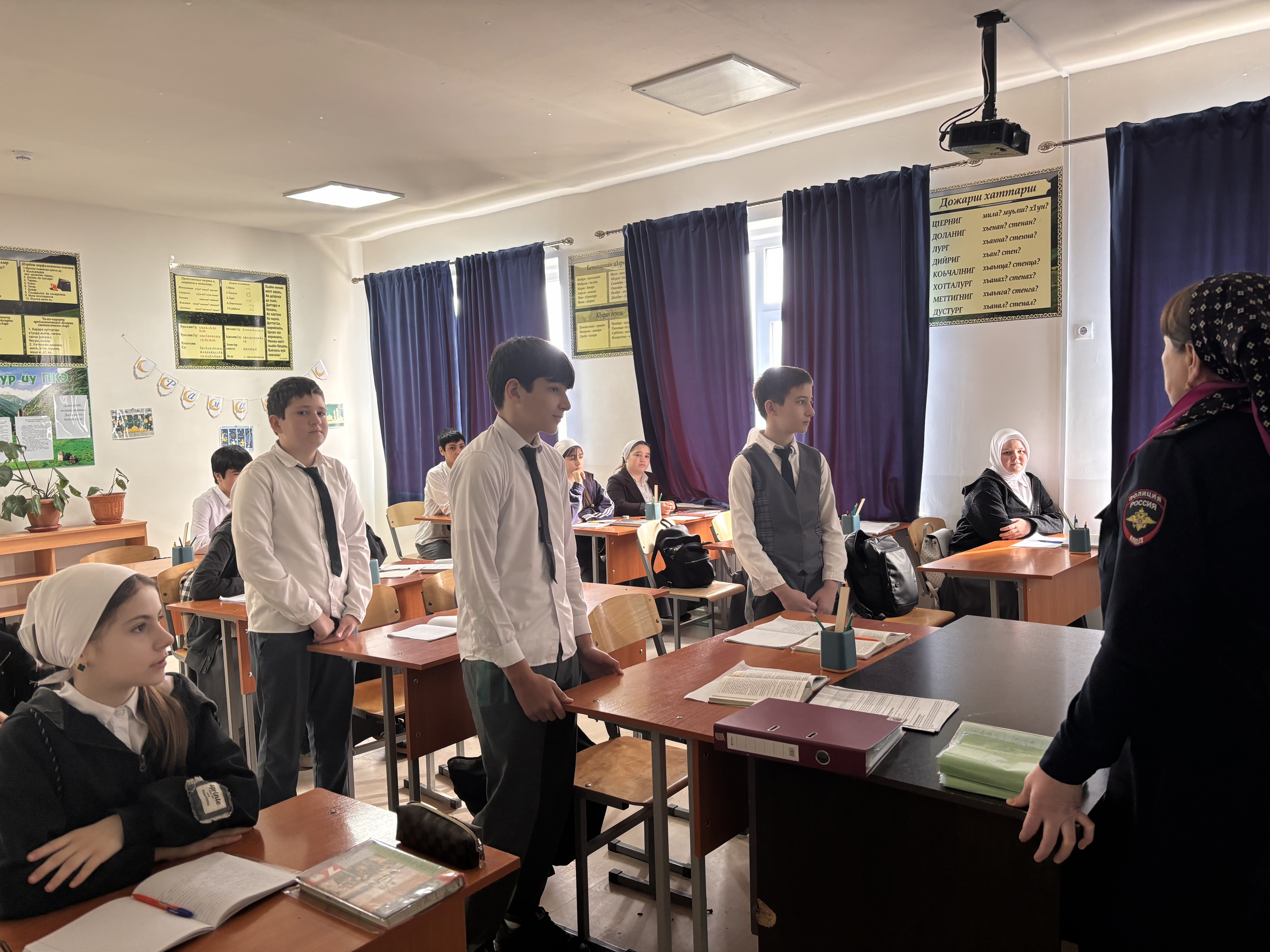 12.02.202612.02.2026 года учащиеся 7-8 классов приняли участие в беседе с инспектором ПДН Магомадовой Т. Л. и участником СВО Исмаиловым С. И. на тему "Герои нашего времени". Цель мероприятия – рассказать о героях нашего времени, показать примеры всеобщего героизма людей в современное время, воспитание таких качеств, как порядочность, честь, верность долгу.
