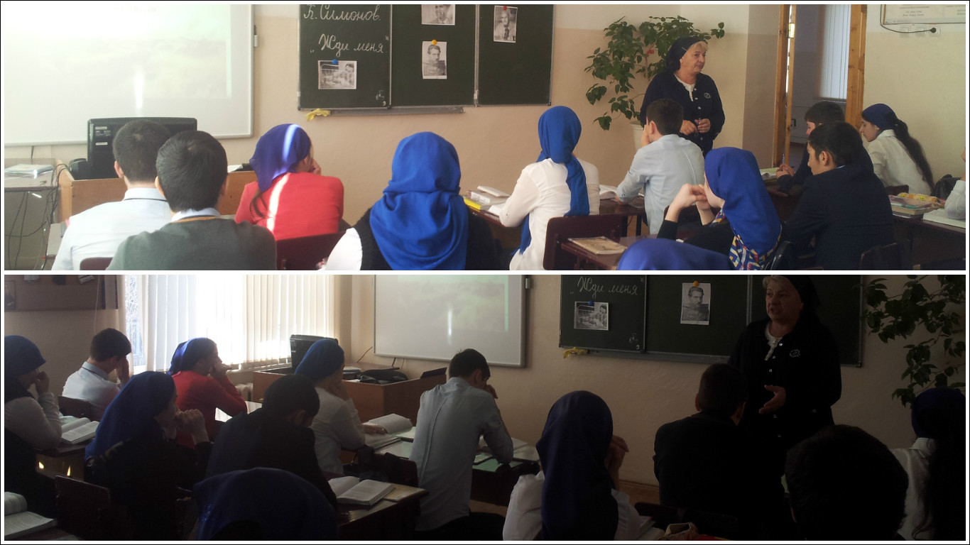 19 ноября 2015 года в 11 классе к 100-летию русского советского писателя, поэта, киносценариста К. М. Симонова прошел урок русского языка и литературы Гайтукаевой Натуси Рашидовны. Урок был посвящен его поэзии, прозвучали такие стихи, как «Жди меня», «Так и будет», «Русские люди», стихотворения из книг «С тобой и без тебя», «Война» и многие другие. Уходя с урока, учащиеся непроизвольно читали про себя:Жди меня, и я вернусь.Только очень жди… Слова знаменитого стихотворения запали в душу.